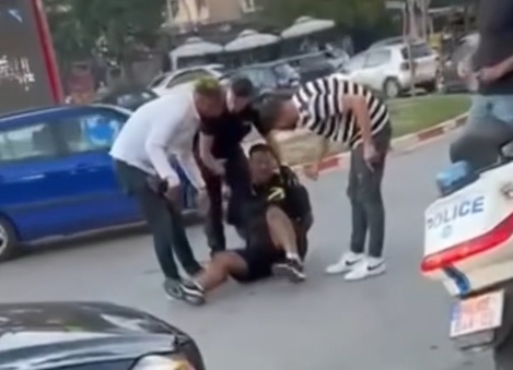 Pamjet tregojnë momentin kur së paku tre zyrtarë policorë fillimisht fjalosen me qytetarin, e në ndërkohë, në tentim për ta arrestuar atë, edhe ushtrojnë dhunë fizike ndaj tij.